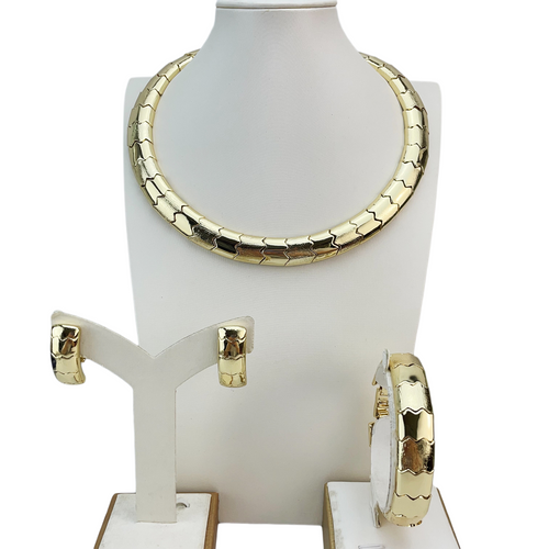 Luxe Gold Plated Chain-Link Jewelry Set – Necklace, Earrings & Bracelet