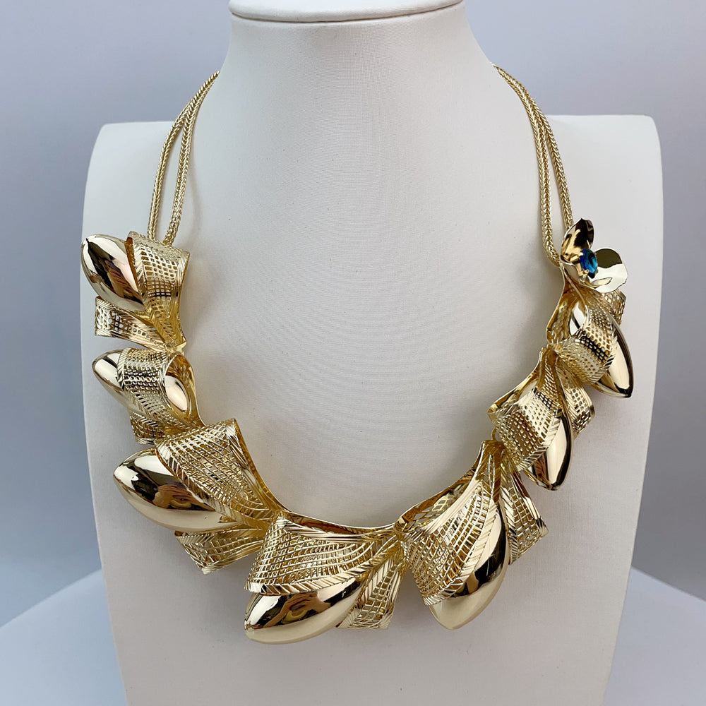 Make every look unforgettable with this Luxury Gold Mesh Set with Blue Rhinestone — a dazzling combination of elegance and bold design. This exquisite set features a sculptural gold necklace with interwoven mesh detailing, paired with coordinating earrings and a matching bracelet that exude sophistication and grace.