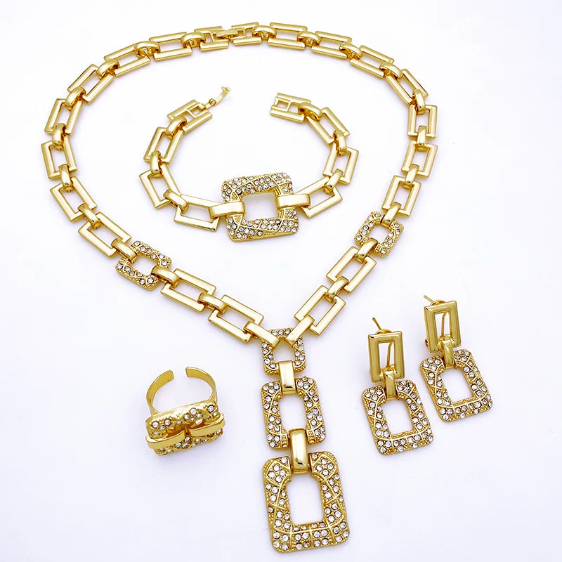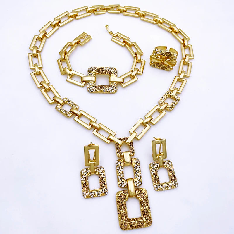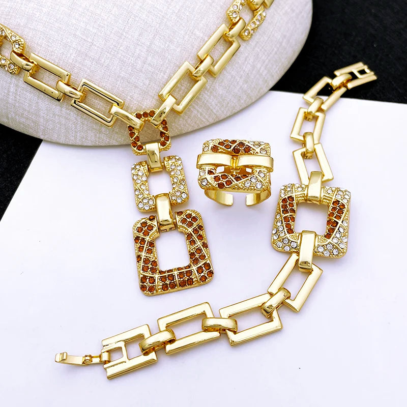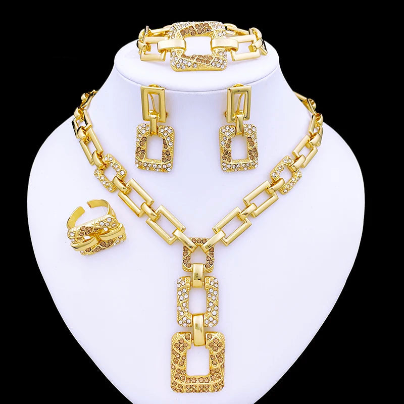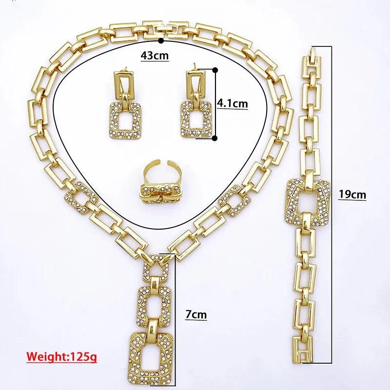 Each piece in this set showcases exquisite detailing, ensuring a radiant glow that complements any outfit. Whether you're dressing up for an elegant evening or adding a touch of glamour to your ensemble, this jewelry set is a must-have addition to your collection.
